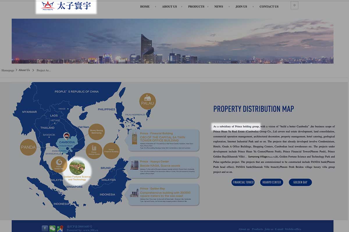金运园区被列在了太子集团旗下太子寰宇地产集团(Prince Huan Yu Real Estate)的网页上,该园区在网页上的“楼盘分布图”被明确标出。
